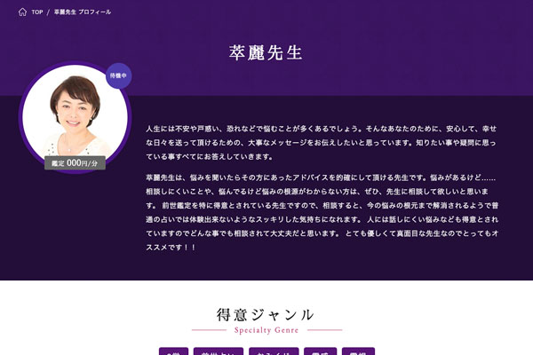 占い師が在籍中となっている場合は、すぐに鑑定して頂けます。